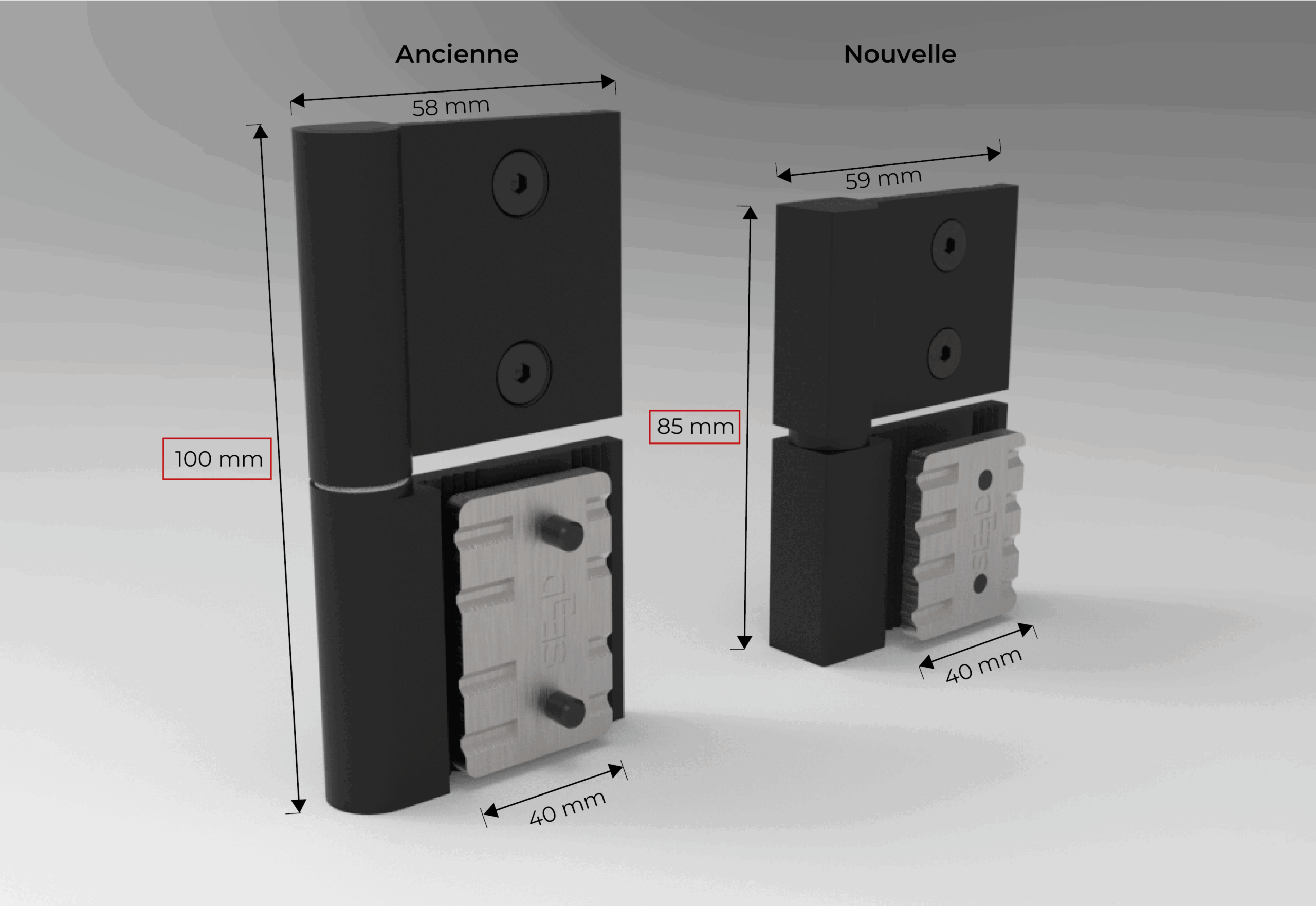Grâce à cette paumelle réversible, SEED simplifie la gestion des références tout en améliorant les performances mécaniques et esthétiques.