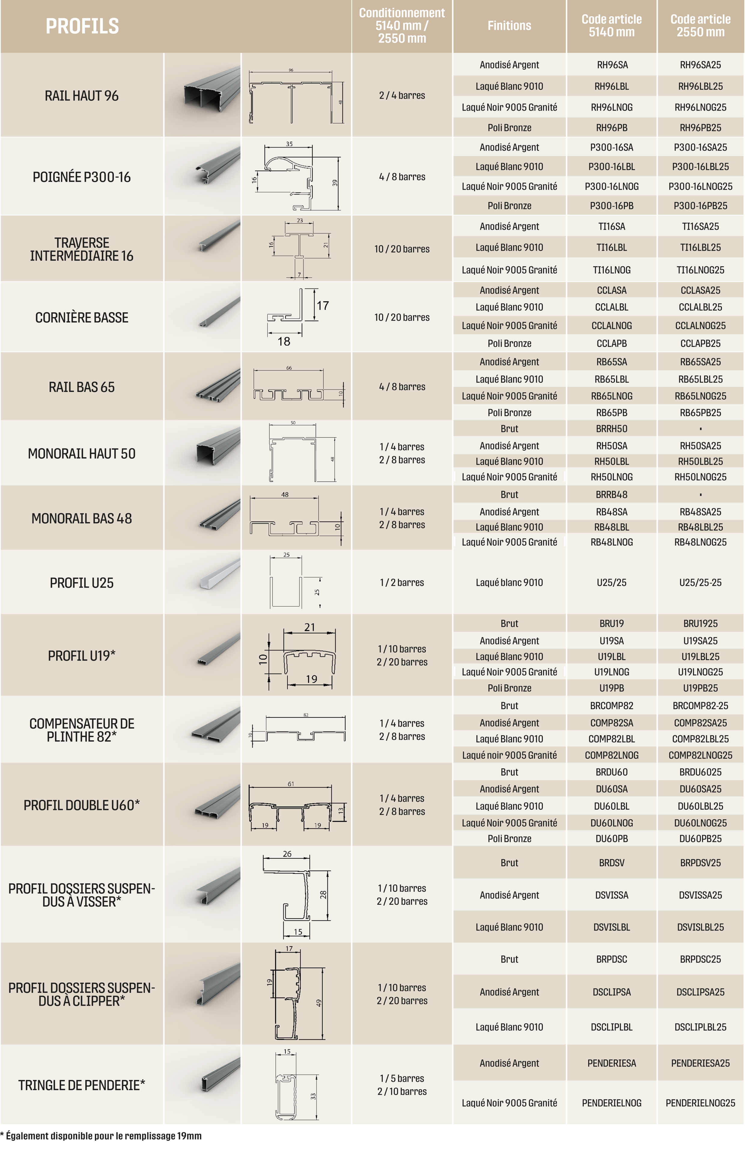- Remplissage : 16/18/19mm panneaux décoratifs ou miroirs