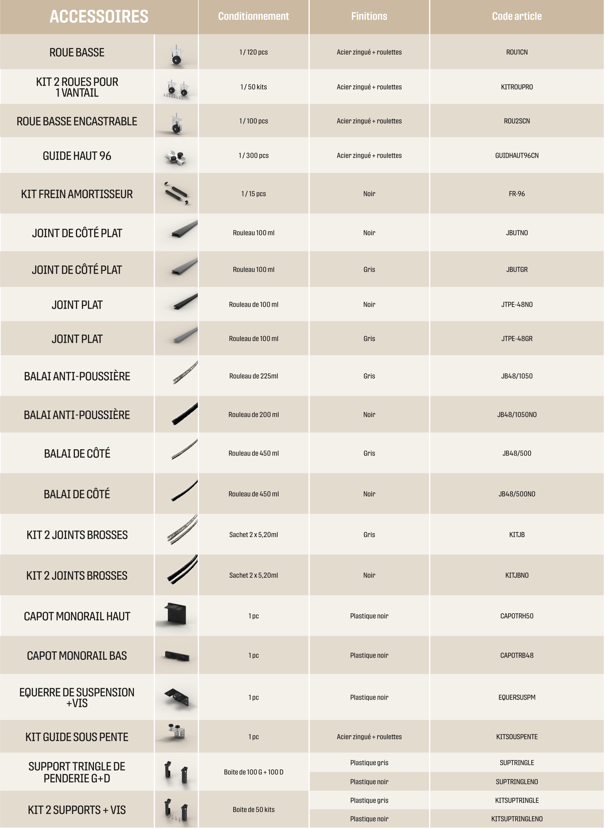 - Intégration : possibilité d’intégrer 1 ou plusieurs traverses