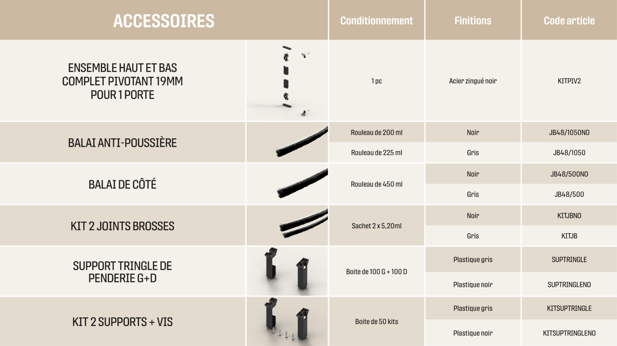 - Remplissage : 19mm panneaux décoratifs ou miroirs