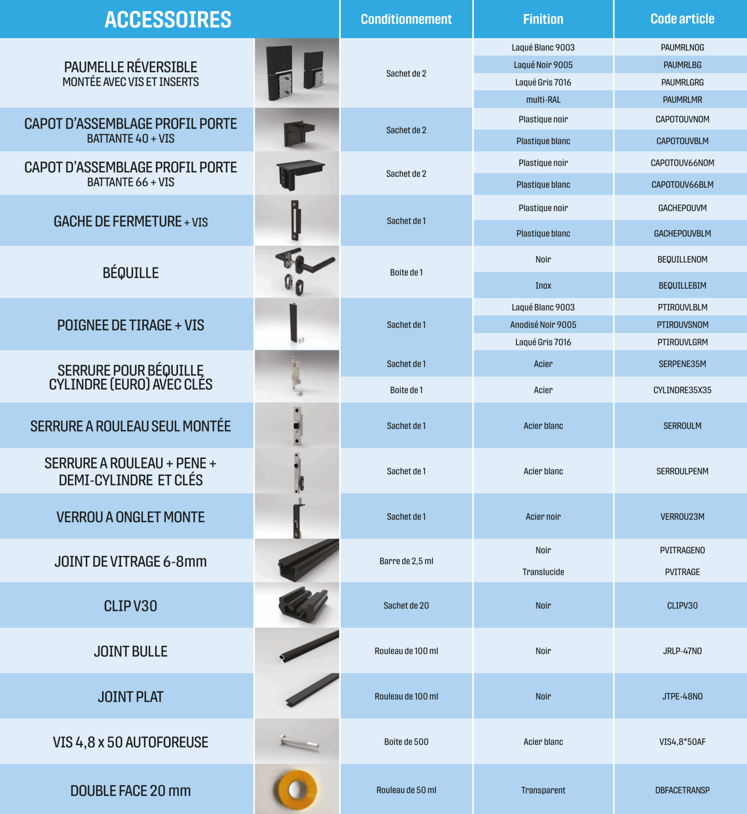 - Profil 66 usiné : pour intégration facilité de serrure ou béquille